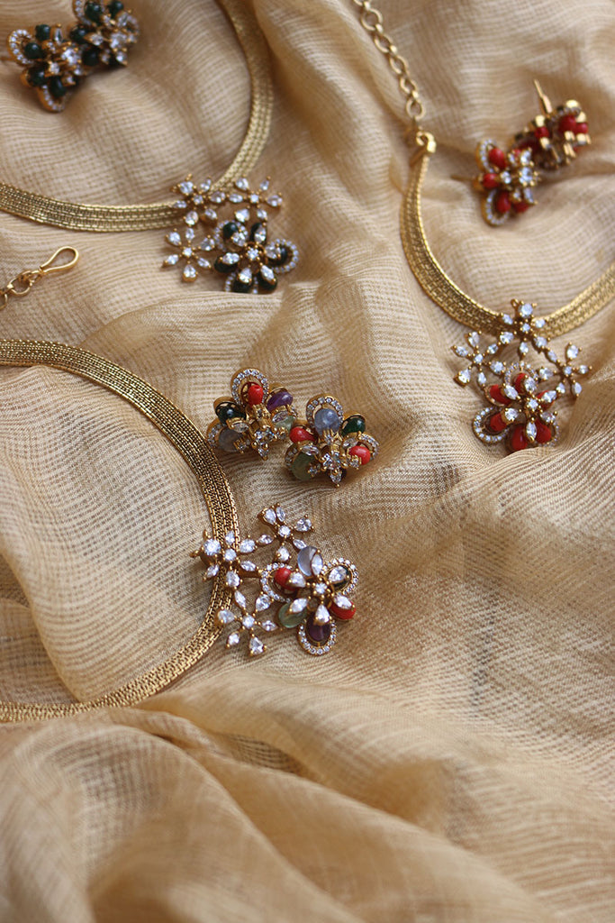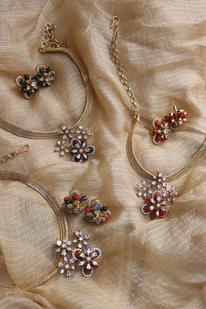 Flower Pendant Close Neck Set
