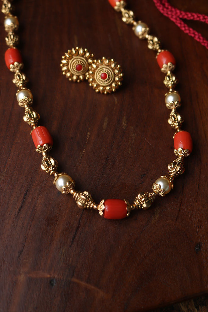 Coral Pearl Maala Set