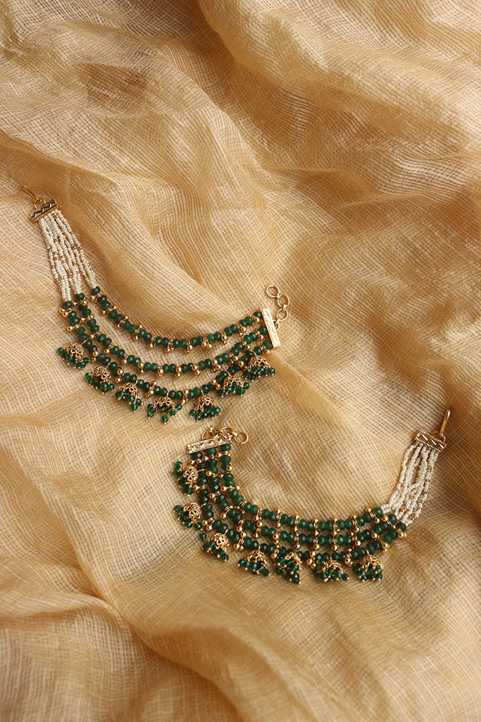 Green Bead Line Jhumki Ear Chain