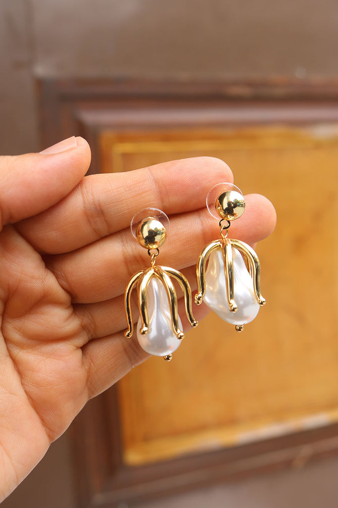Pearl Clasp Bud Earrings