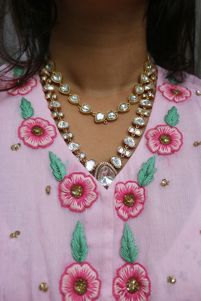 Polki Kundan Two Layer Drop Necklace